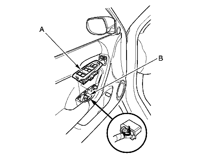 2. Disconnect the 37P connector (B) from the power window master switch.