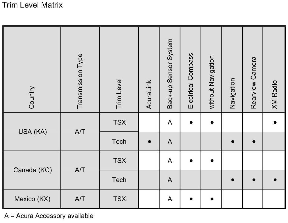 ETM Trim Level Matrix