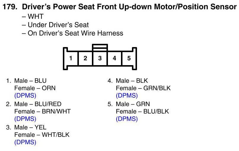 View 179 - Driver's Power Seat Front Up-Down Motor/Position Sensor Connector View