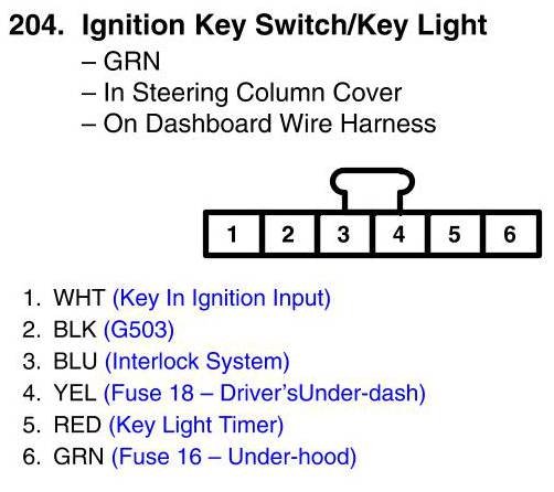 Ignition Key Switch/Key Light Connector View