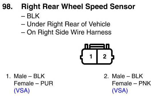 Right Rear Wheel Speed Sensor Connector View