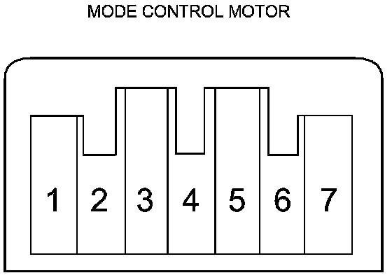4. Measure the resistance between terminals No. 5 and No. 7 of the mode control motor. It should be between 4.2 and 7.8 kOhms.