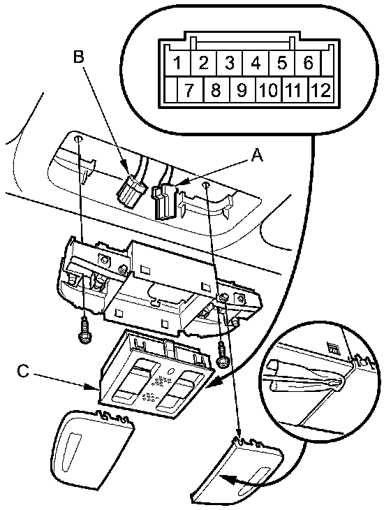 3. Remove the moonroof switch (C) from the map light housing.