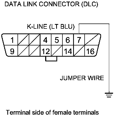 21. Connect DLC terminal No. 7 to body ground with a jumper wire.