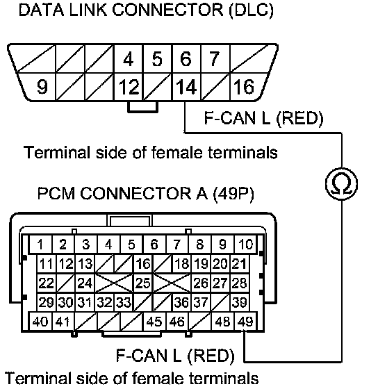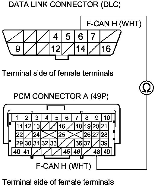 Repair open in the wire between the PCM(A49) and DLC terminal No. 14.�