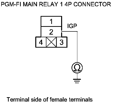 43. Check for continuity between PGM-FI main relay 1 4P connector terminal No. 2 and body ground.