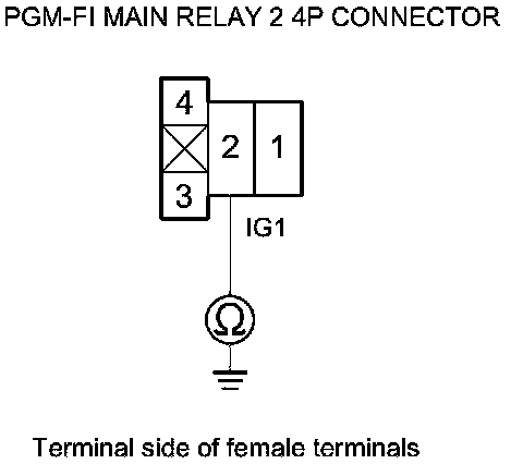41. While disconnecting each of the parts or connectors below, one at a time, check for continuity between PGM-FI main relay 1 4P connector terminal No. 2 and body ground: