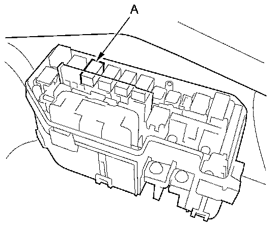 46. Remove the driver's dashboard lower cover Driver's Dashboard Lower Cover Removal/Installation, then remove PGM-FI main relay 2 (A) from the driver's under-dash fuse/relay box.