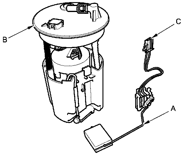 2. Remove the fuel level sensor (fuel gauge sending unit) (A) from the fuel tank unit (B).
