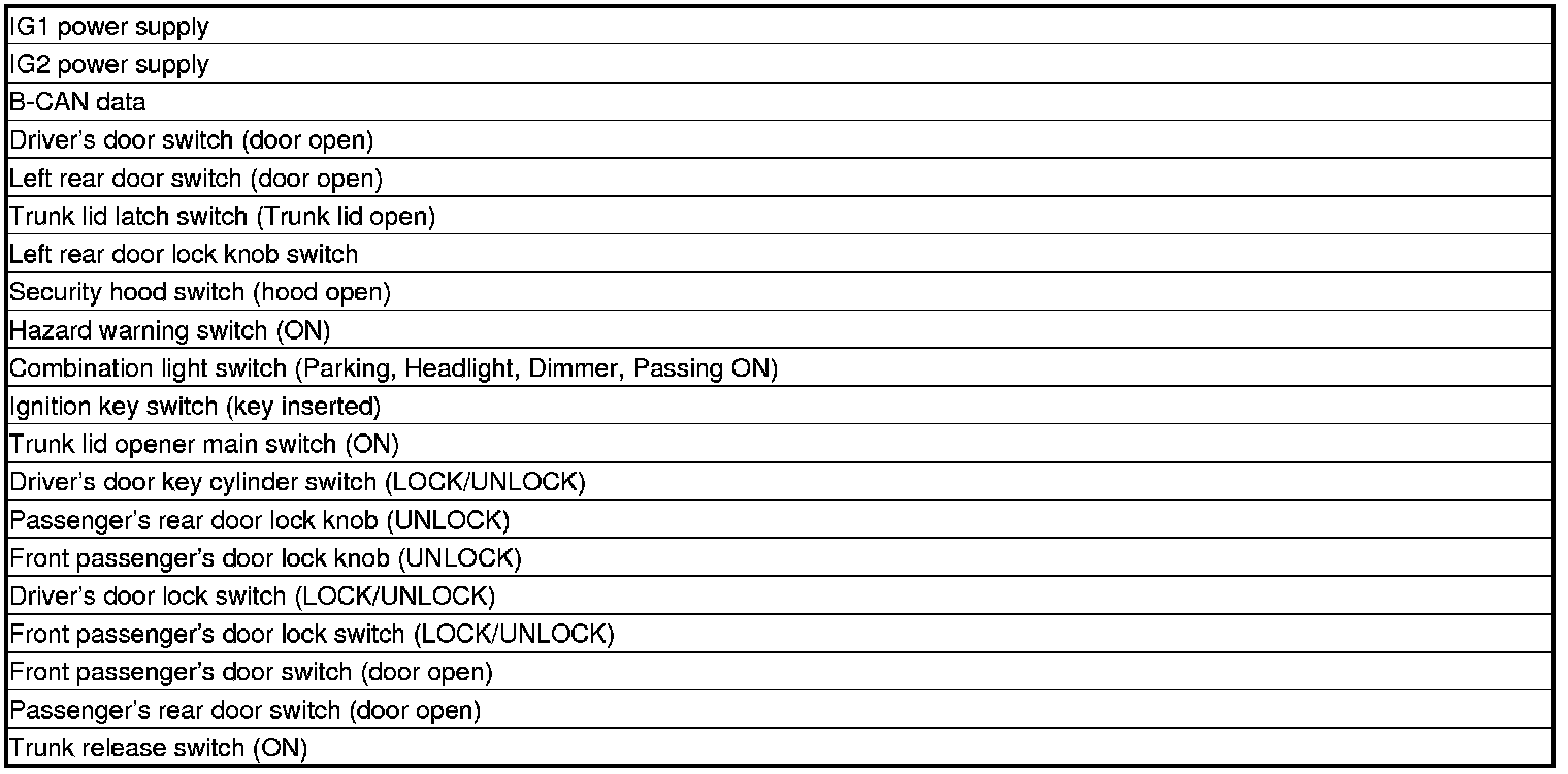 When the ignition switch is turned to ON (II), the driver's MICU, passenger's MICU, gauge control module, immobilizer-keyless control unit, and PCM wake up at the same time without "talking" to each other through the communication lines. When any switch in the multiplex integrated control system is turned on, it wakes up its related control unit which, in turn, wakes up the other units. After confirming the sleep mode, look in the following table for the switch most related to the problem. Operate that switch and see if its control unit wakes up.