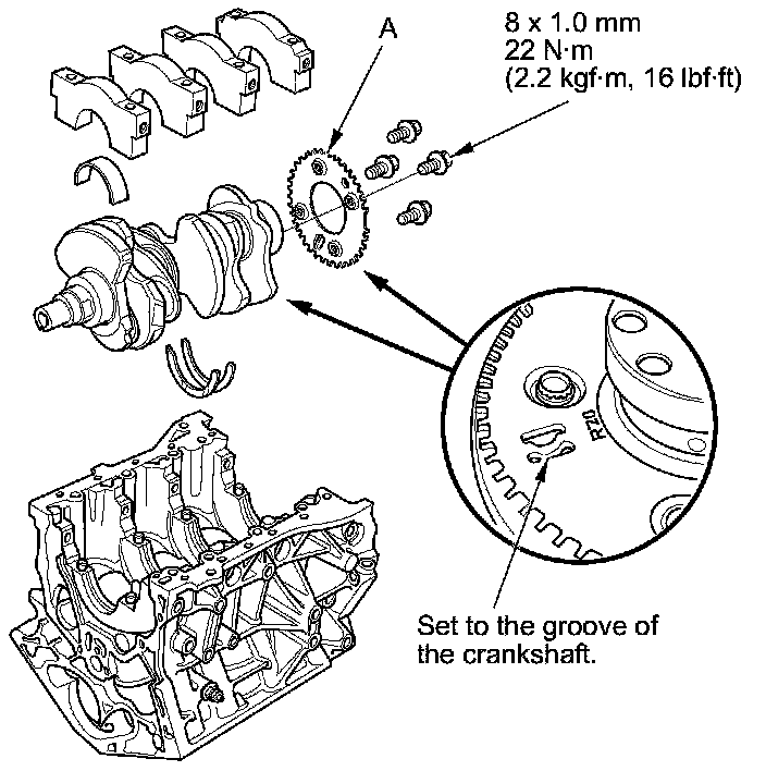 NOTE: When installing the crankshaft, refer to the crankshaft and piston installation procedure Crankshaft and Piston Installation.