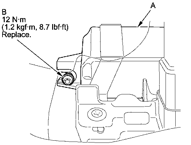 1. Install the SRS unit (A) with the new TORX bolt (B), using a TORX T30 bit.