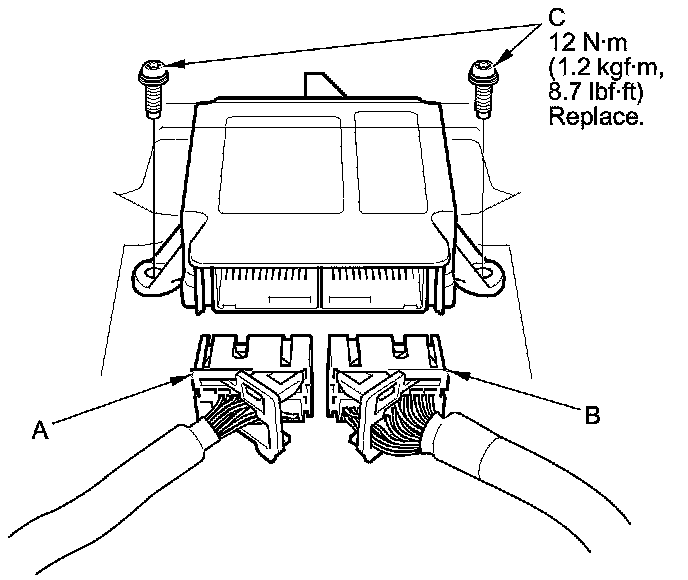 2. Install the new TORX bolts (C) using a TORX T30 bit.