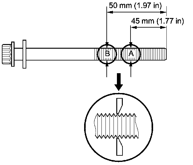 Install new bolt if either diameter is less than 11.3 mm (0.445 in).