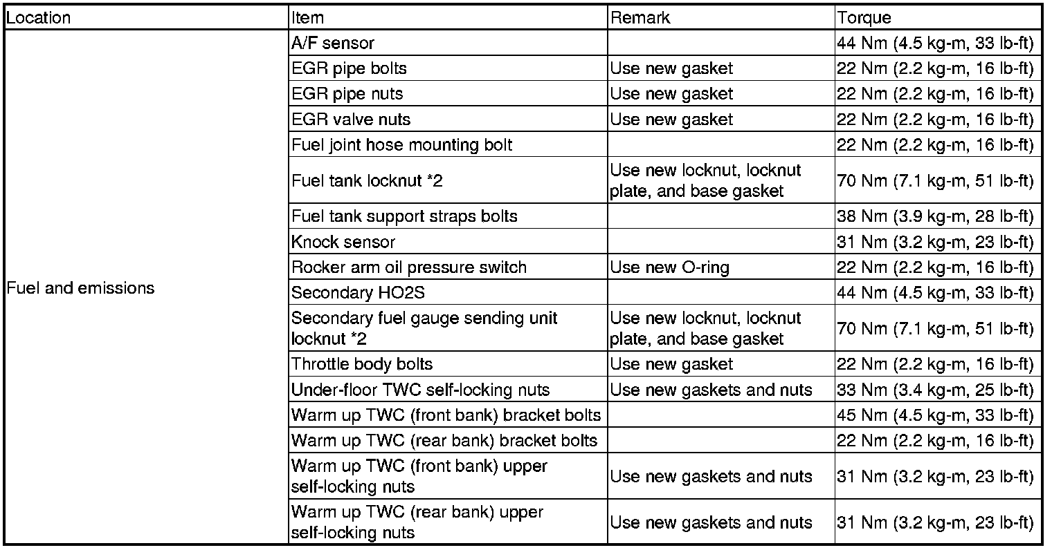 Torque Specifications