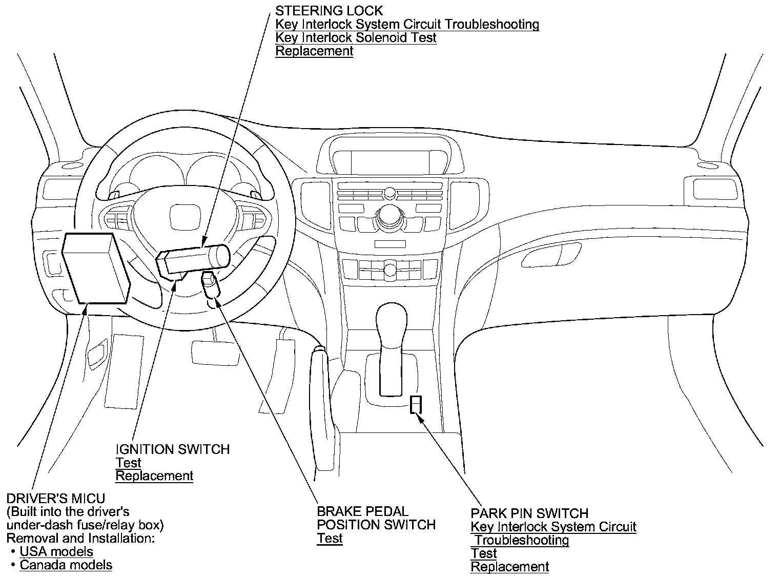 Ignition Switch Component Location Index