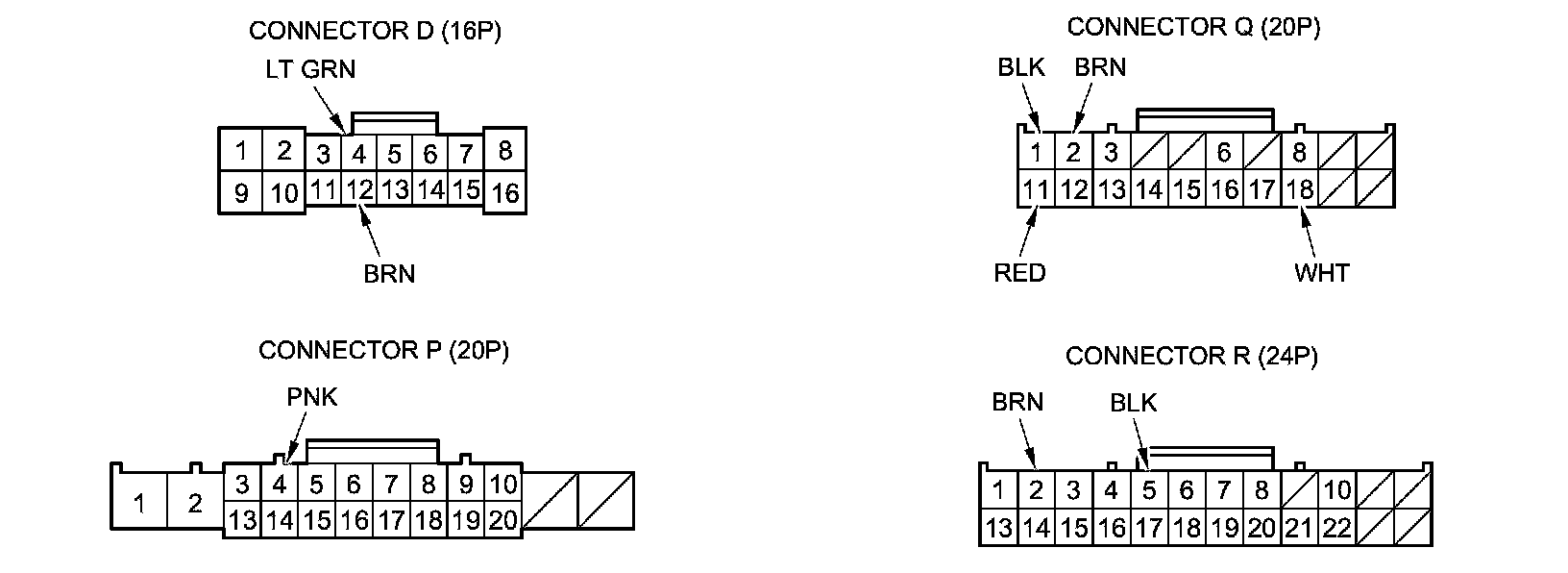 3. Disconnect driver's under-dash fuse/relay box connectors D, P, Q, and R.