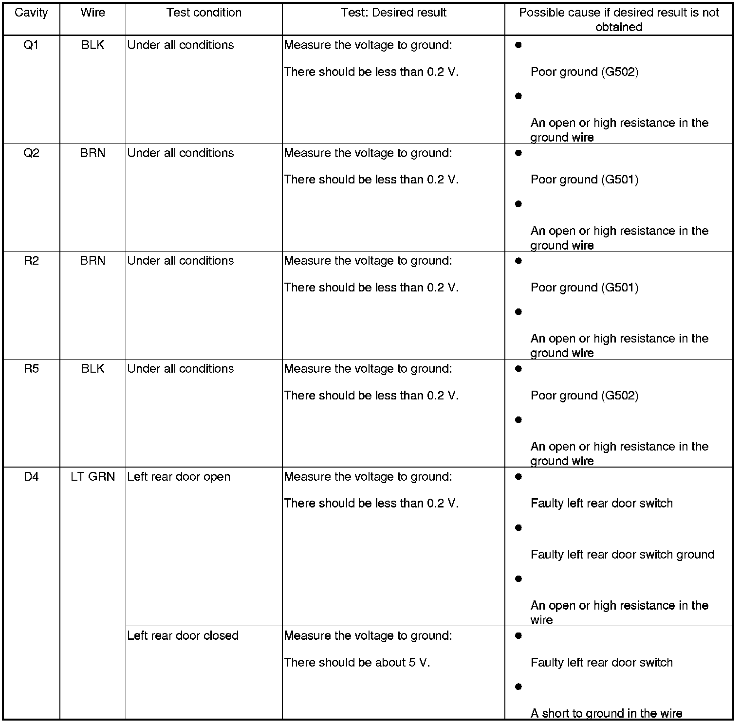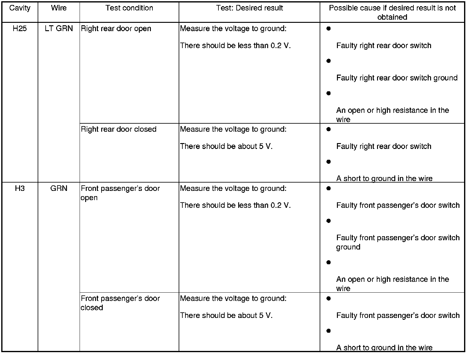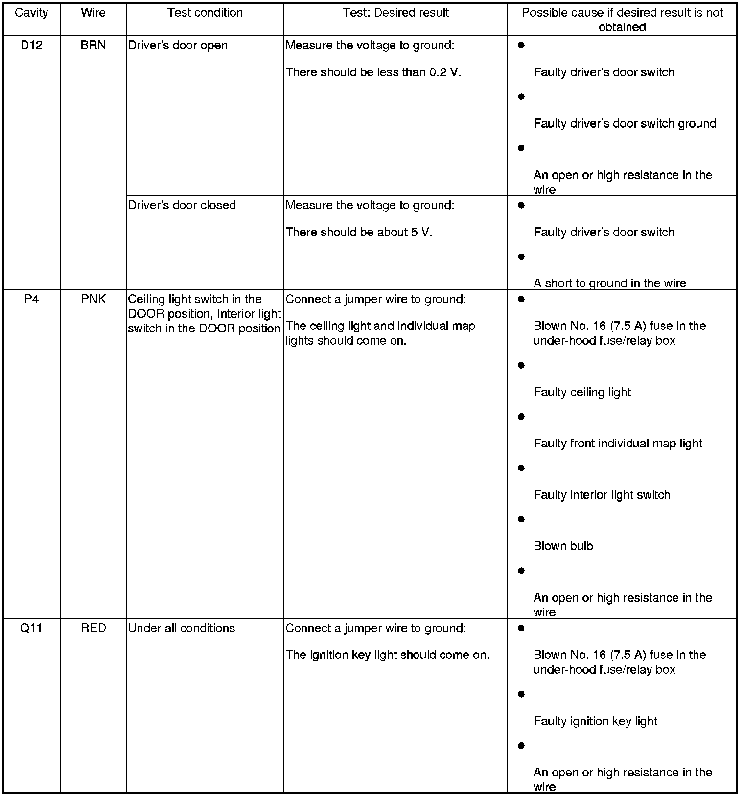 Entry Lights Control System (Drivers and Passengers MICU, and Door Multiplex Control Unit) Input Test