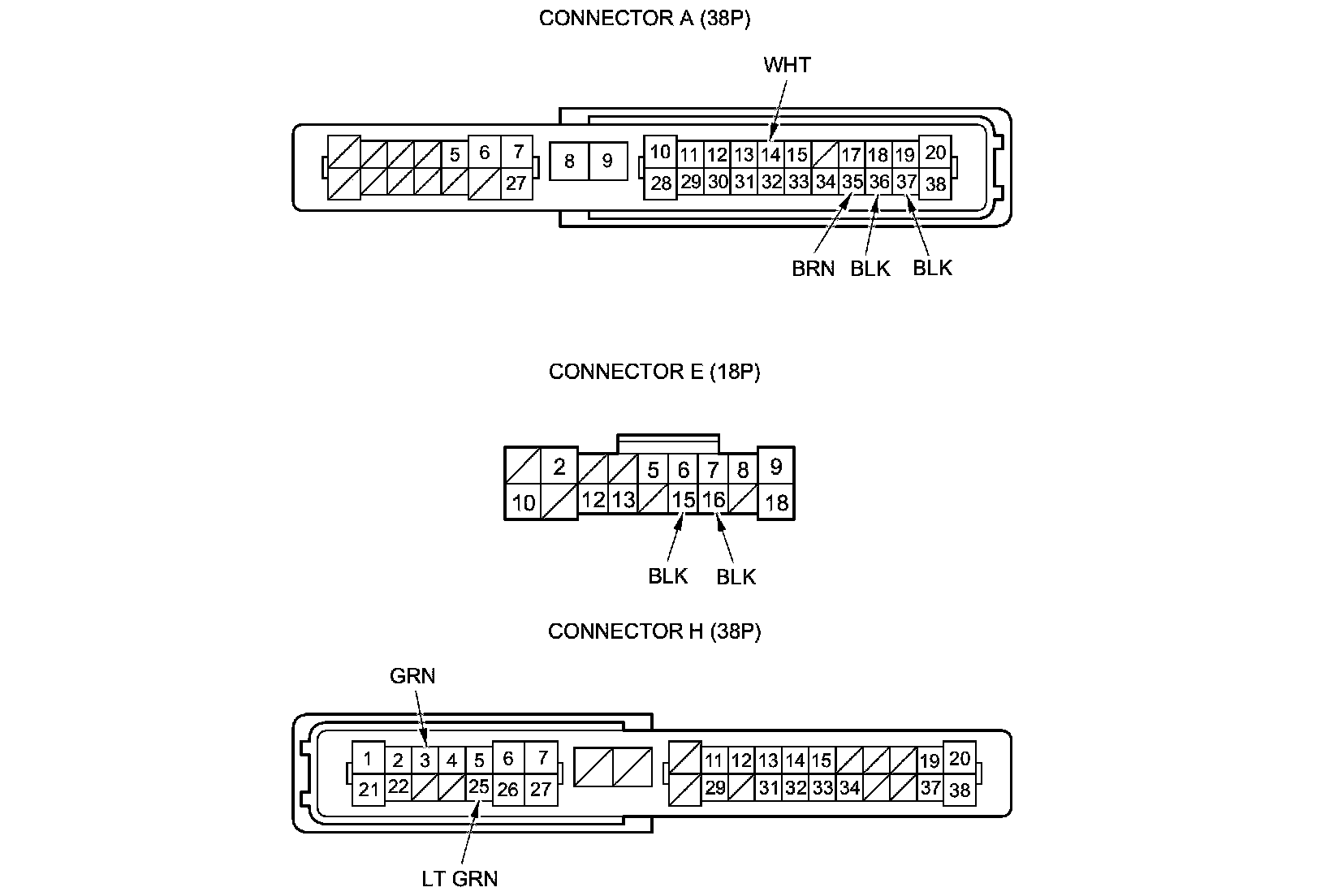 NOTE: All connector views are wire side of female terminals.