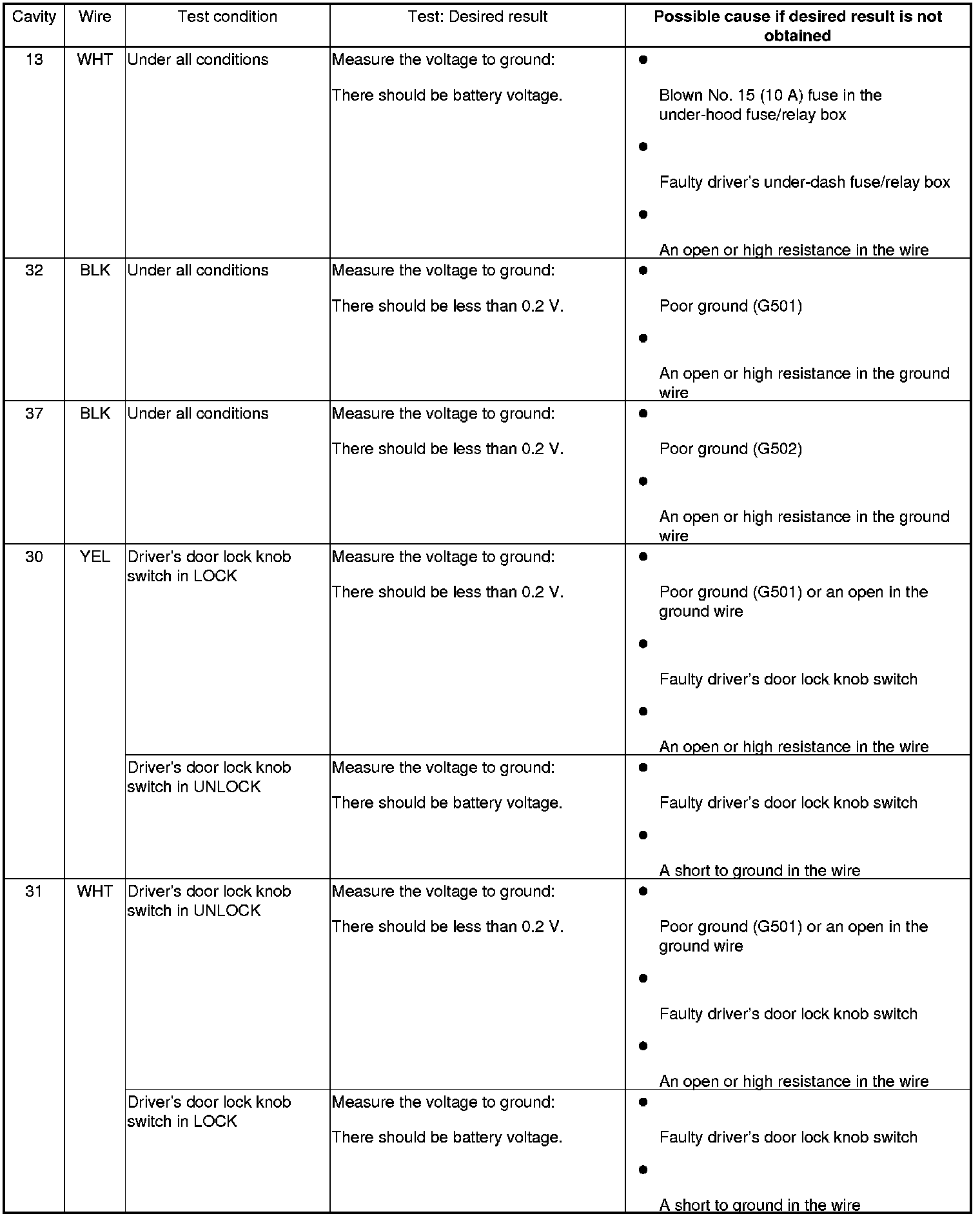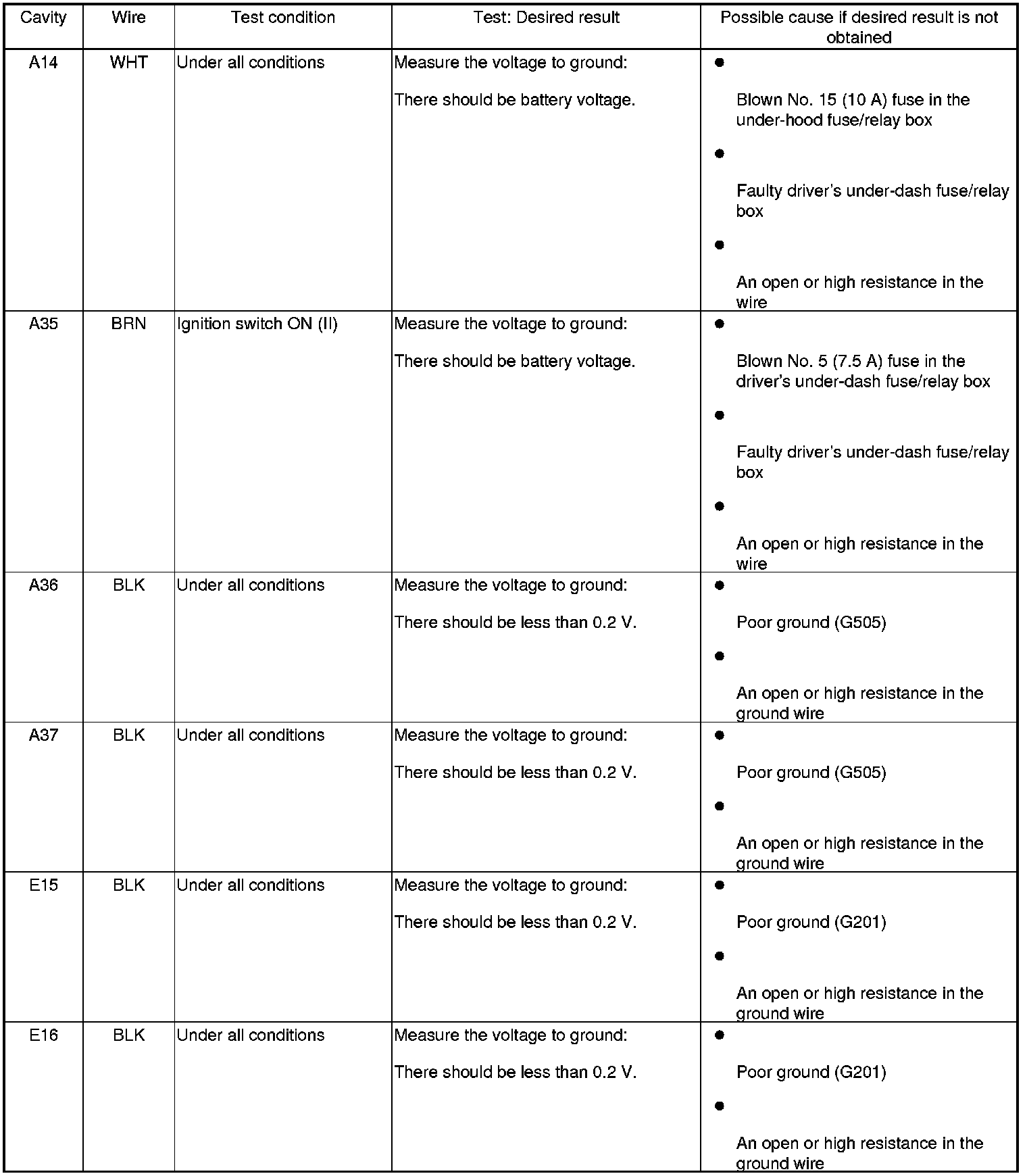 5. Reconnect the connectors to the driver's under-dash fuse/relay box, and do the following input tests: