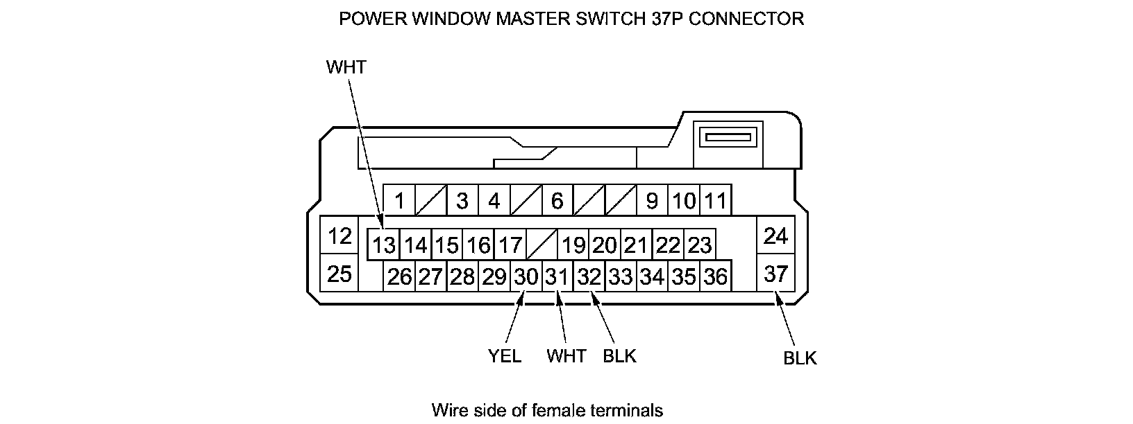 13. Reconnect the 37P connector to the power window master switch, and do the following input tests: