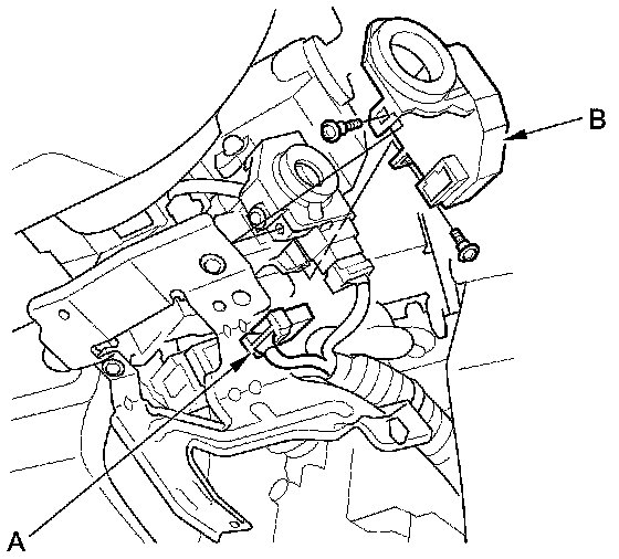 2. Disconnect the 7P connector (A) from the immobilizer-keyless control unit (B).