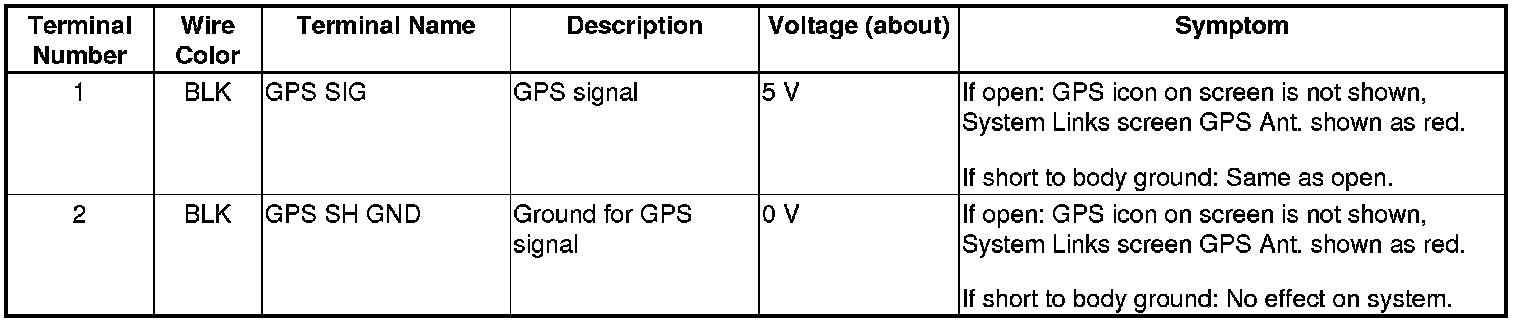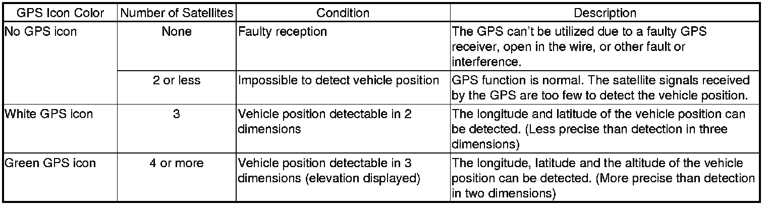 The GPS receiver is built into the audio-navigation unit. It calculates the vehicle position by receiving the signal from the GPS antenna. The current time, vehicle position and signal reception condition is transmitted from the GPS receiver to the audio-navigation unit to adjust vehicle position and the clock in the audio-navigation switch panel display.