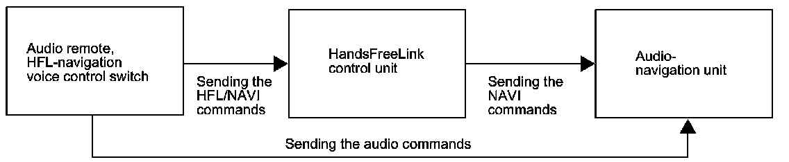 HFL has the highest priority, followed by navigation, and finally the radio/CD-DVD player. The priority is passed by HFL to the audio-navigation unit by dedicated mute wires. The navigation mute signal is passed to the stereo amplifier.
