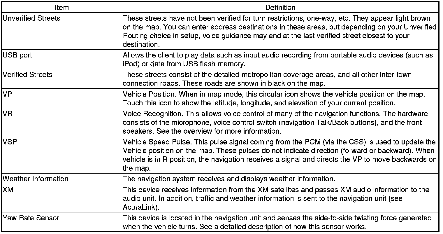 NOTE: All items may not apply to this vehicle. See the Navigation Manual for more information.