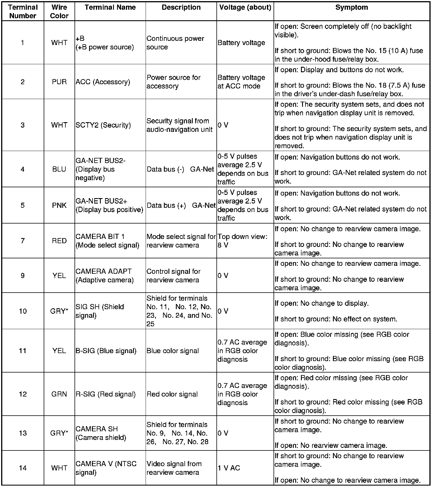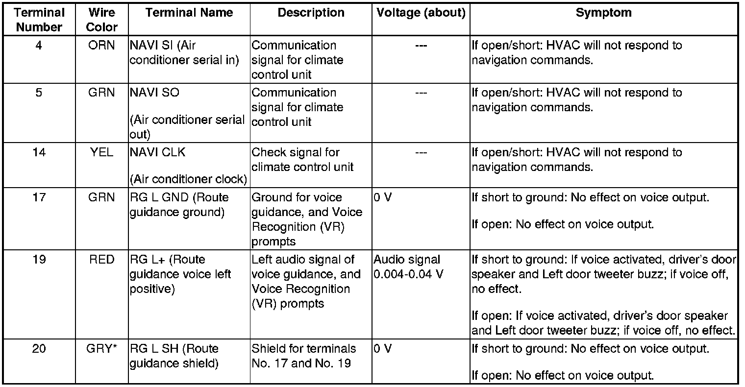 NOTE: Refer to the audio system section for the terminals inputs and outputs not shown.