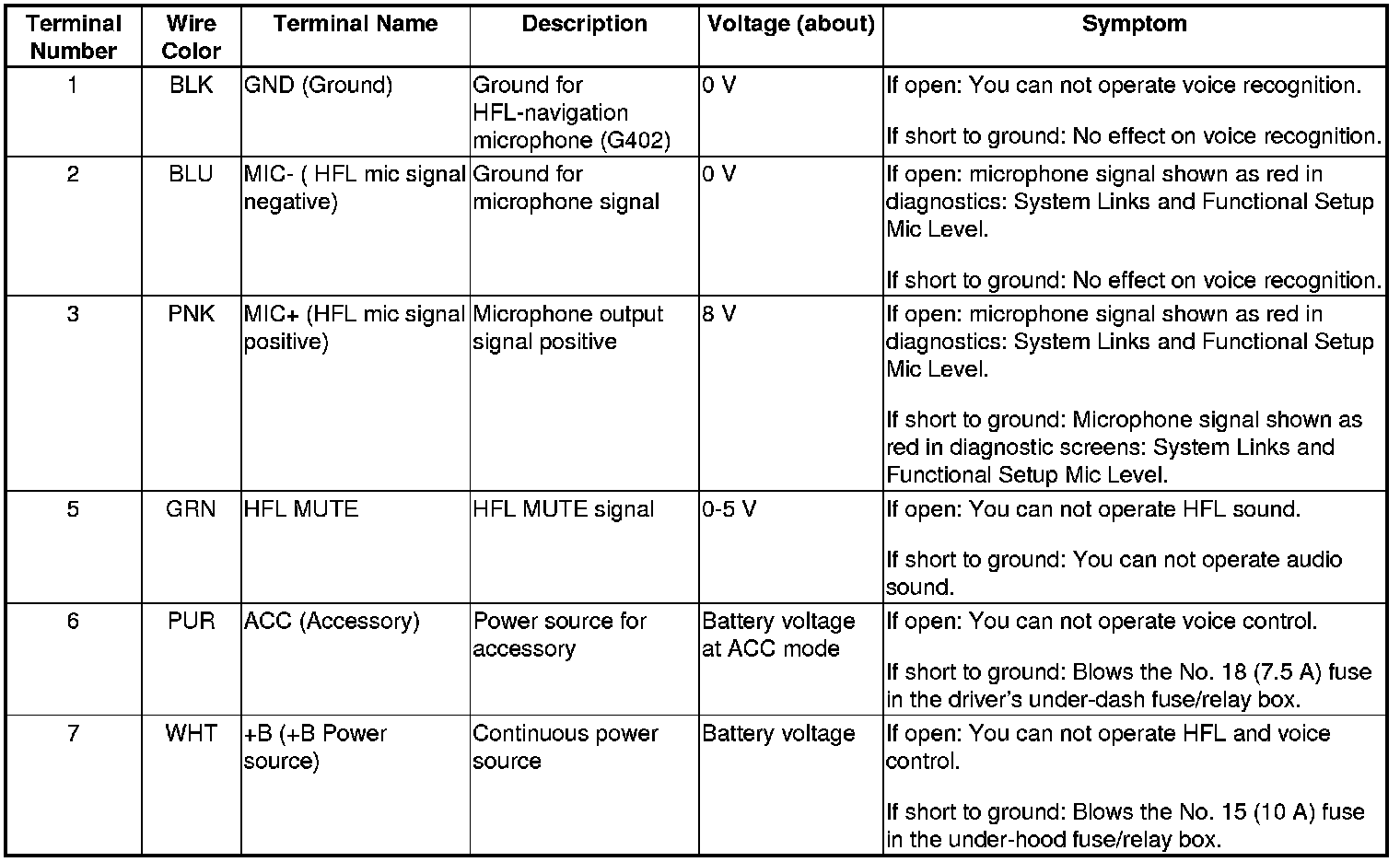 FRONT HFL-NAVIGATION-ANC/ACTIVE SOUND CONTROLMICROPHONE 7P CONNECTOR