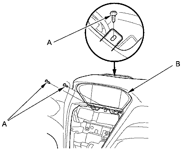 3. Remove the self-tapping screws (A) from the navigation display unit (B).