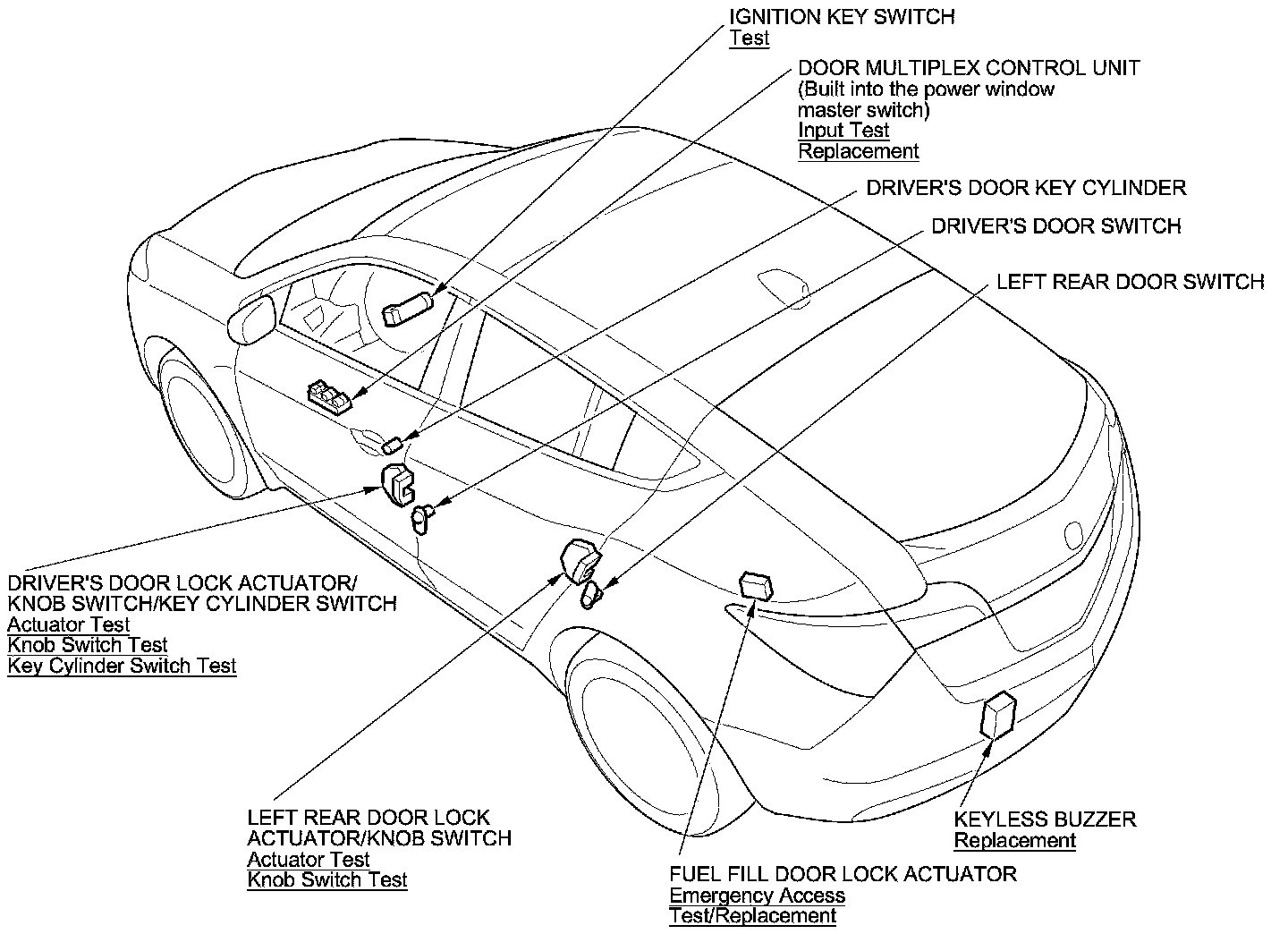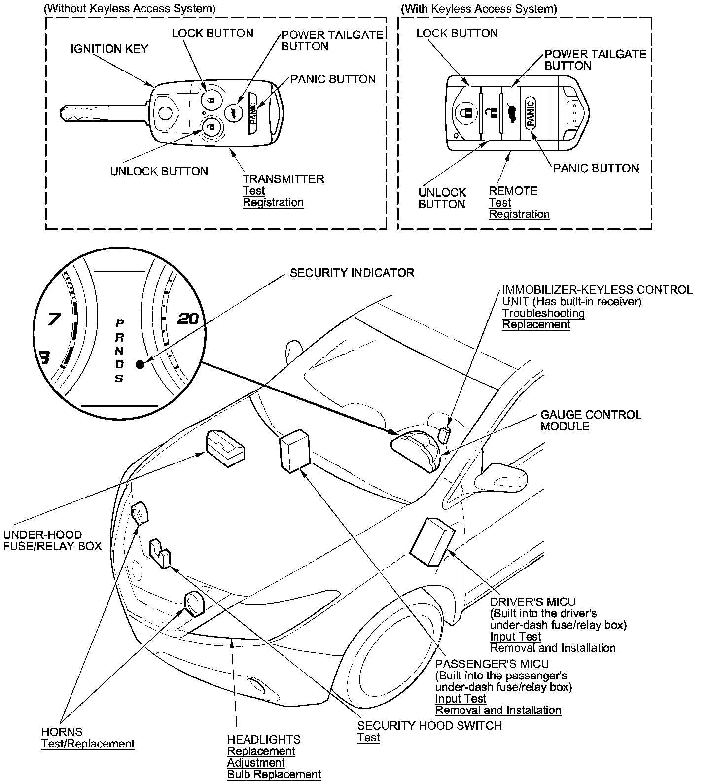 Keyless/Power Door Locks/Security System Component Location Index