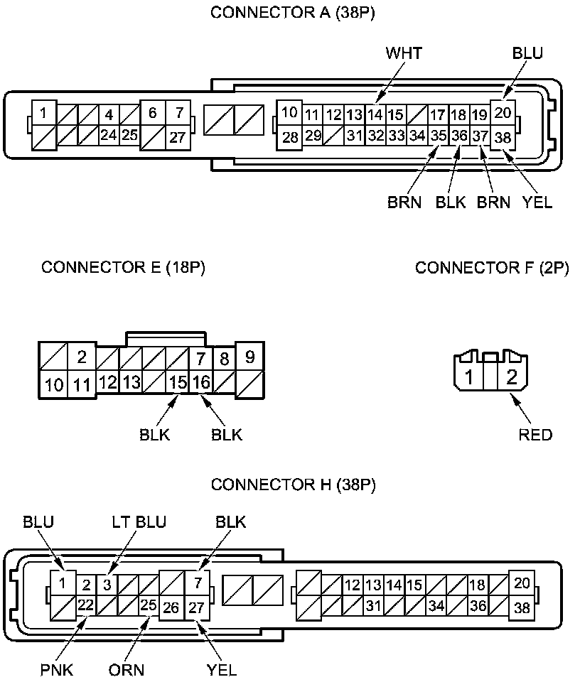 NOTE: All connector views are wire side of female terminals.