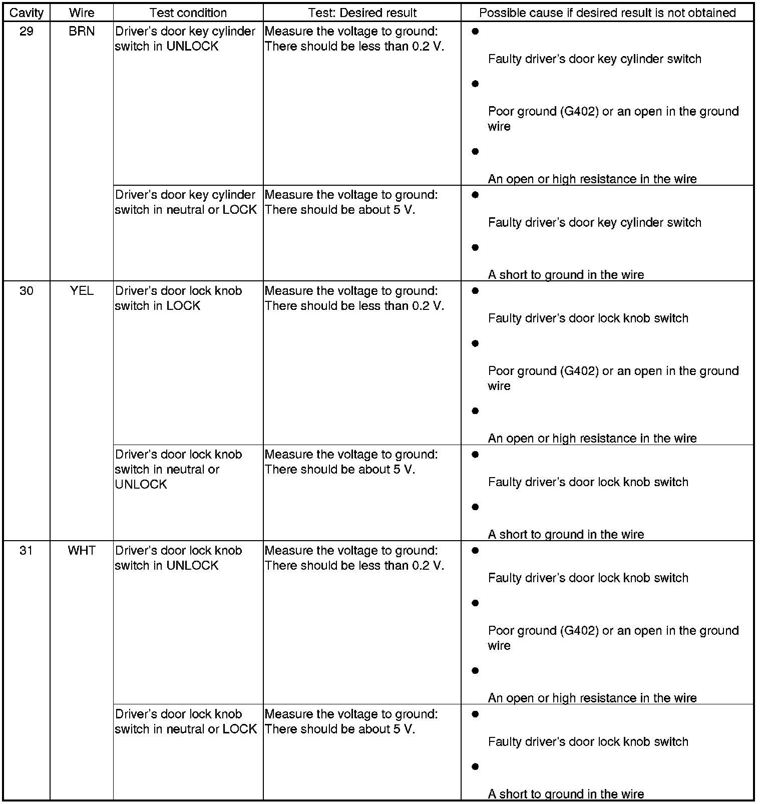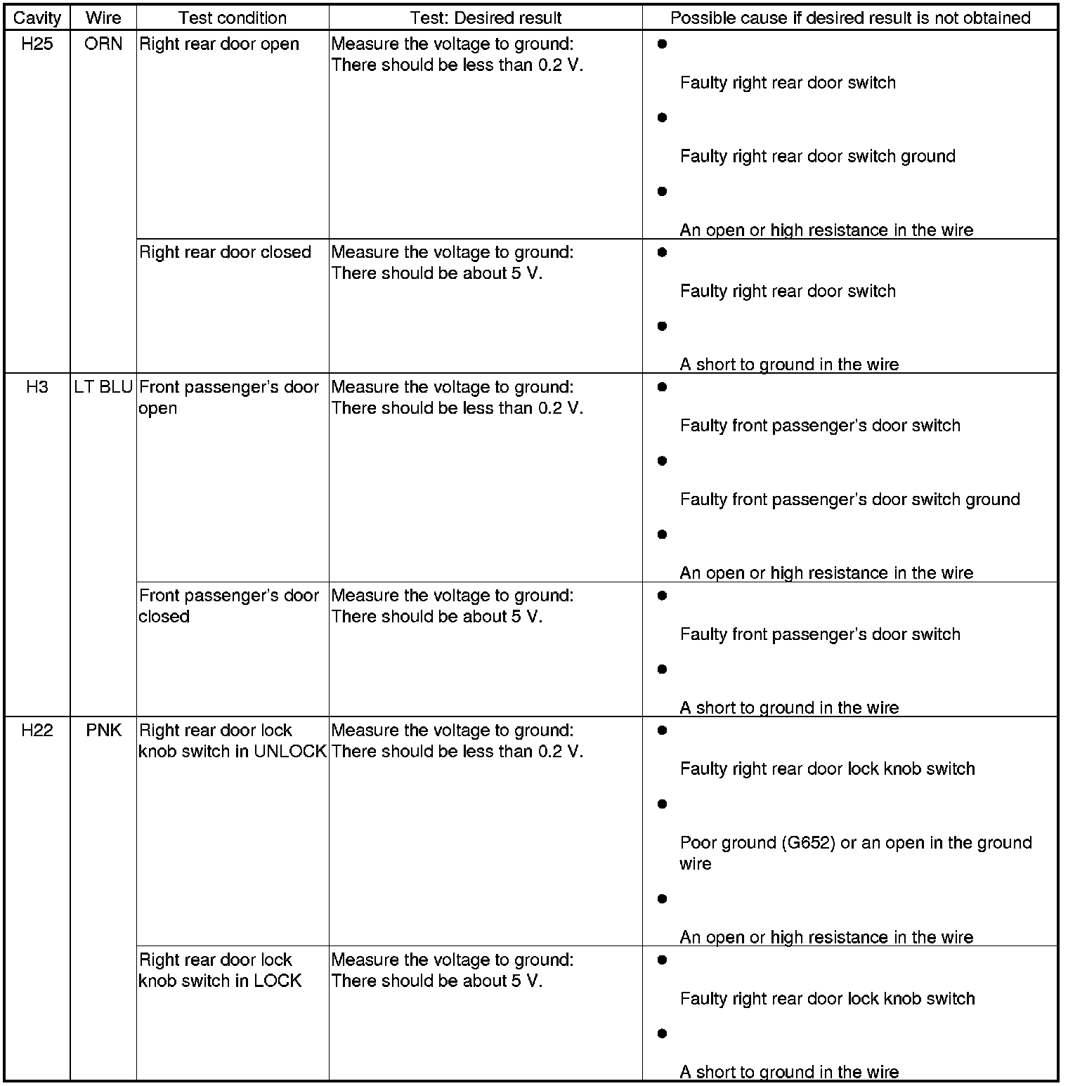 Keyless/Power Door Locks/Security System Input Test