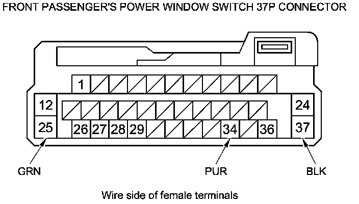 23. Reconnect the 37P connector to the front passenger's power window switch, and do the following input tests: