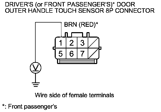 10. Measure the voltage between body ground and outer handle touch sensor 8P connector terminal No. 1.