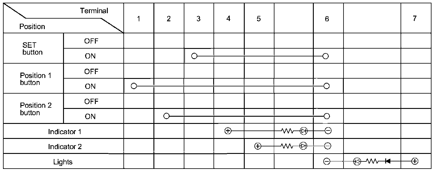 4. Check for continuity between the terminals in each switch position according to the table.