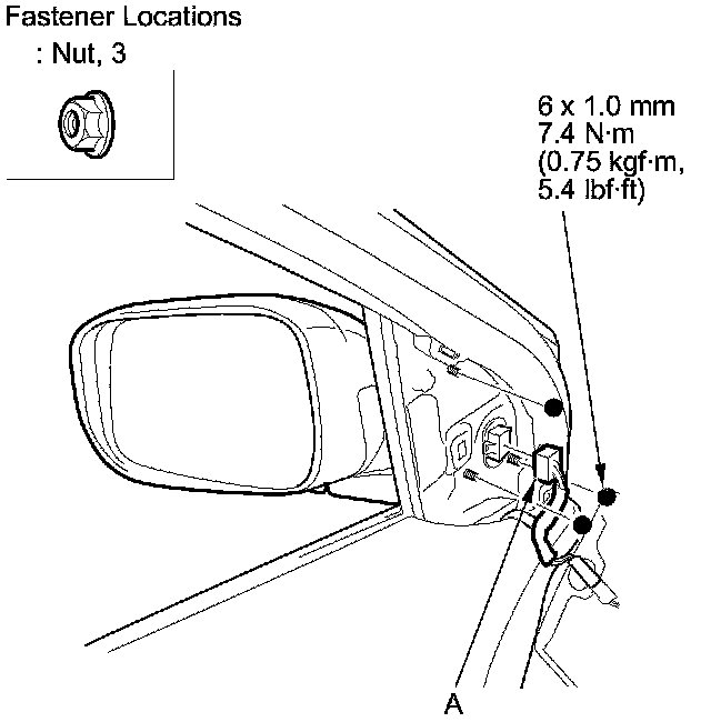 1. Remove the door mirror cover (A).