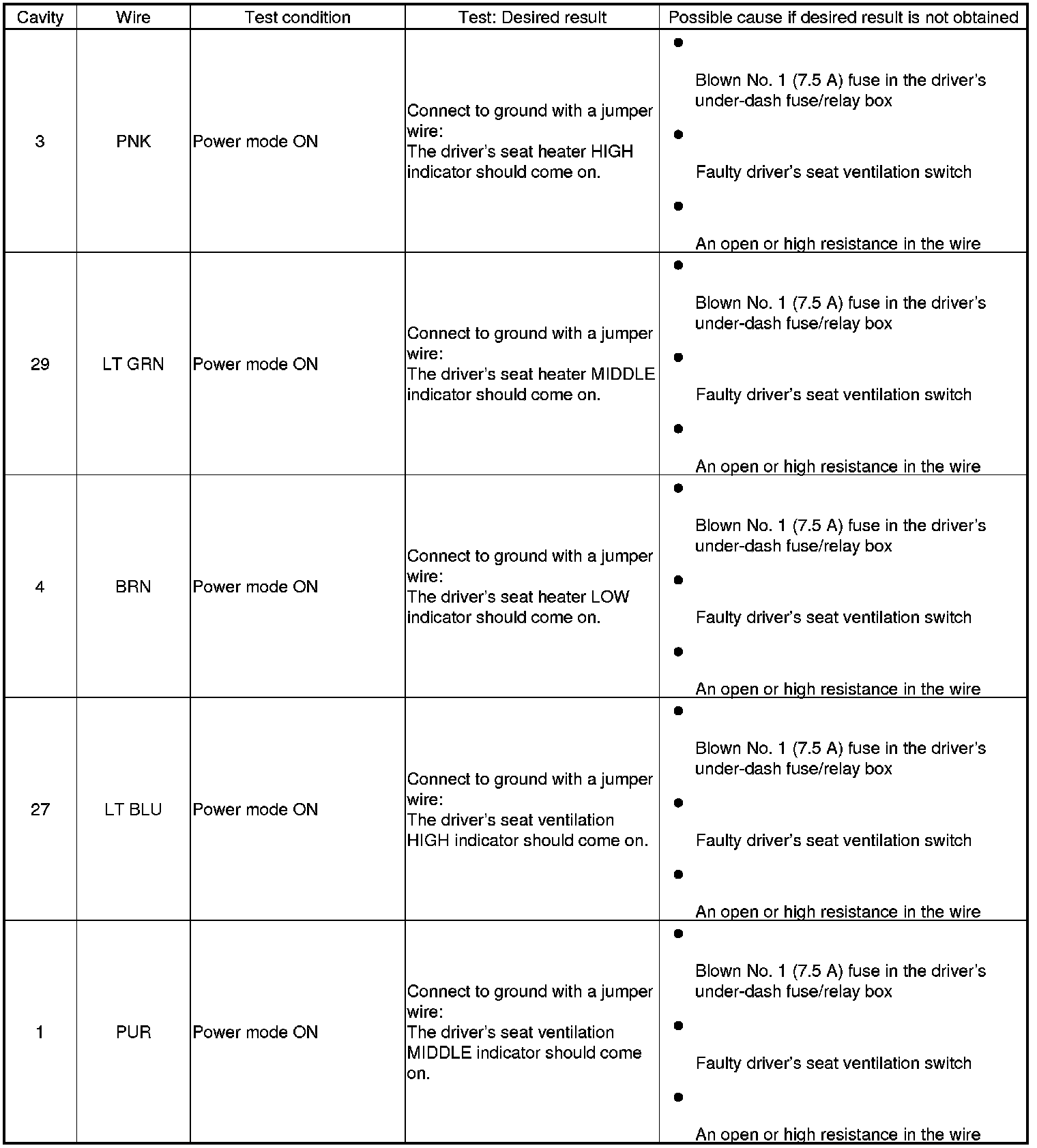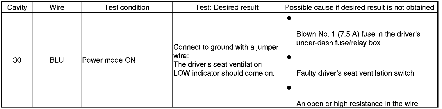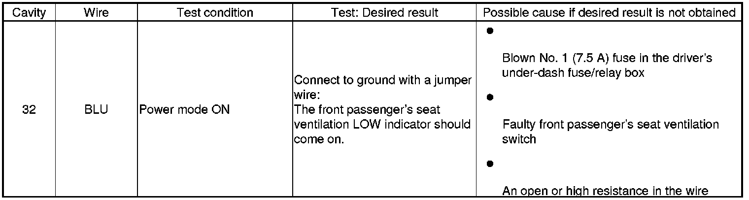 Ventilated Seat Control Unit Input Test/Replacement