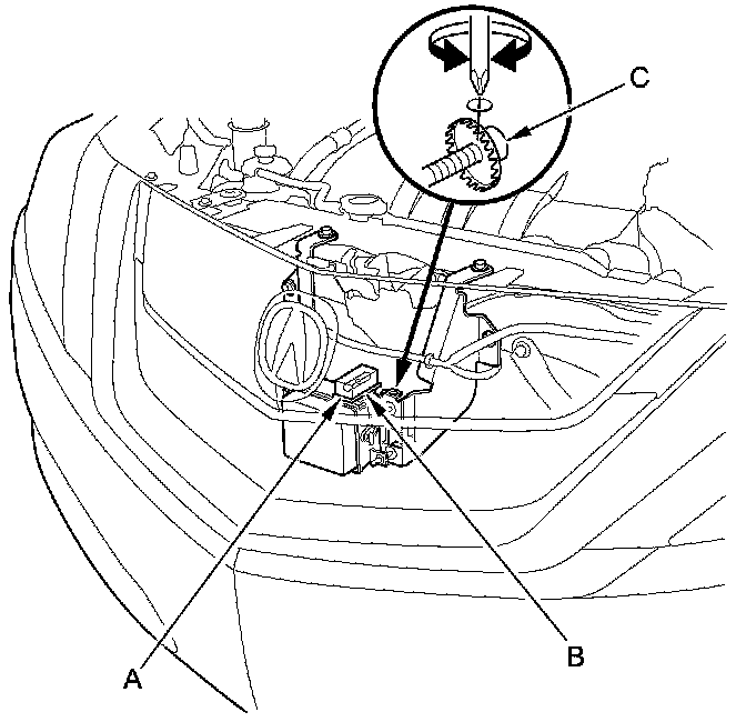 3. Turn the vertical adjusting bolt (C) on the driver's side with a screwdriver, and adjust the angle of millimeter wave radar so that the air bubble in the level is centered.