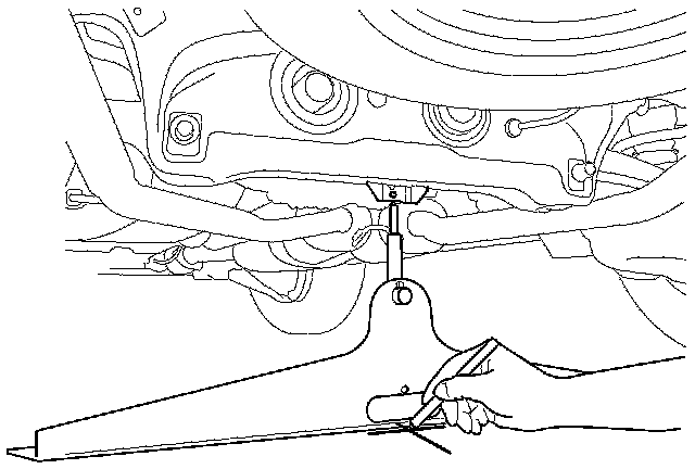 6. Rear area of the vehicle: Place the centering stand under the rear jack point, then mark the floor at the centerline of the tool.
