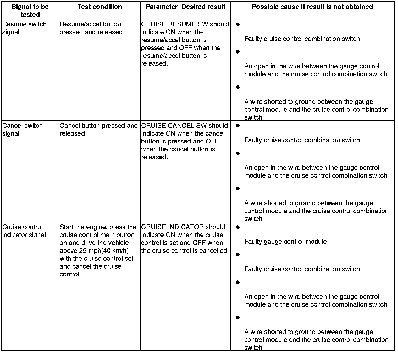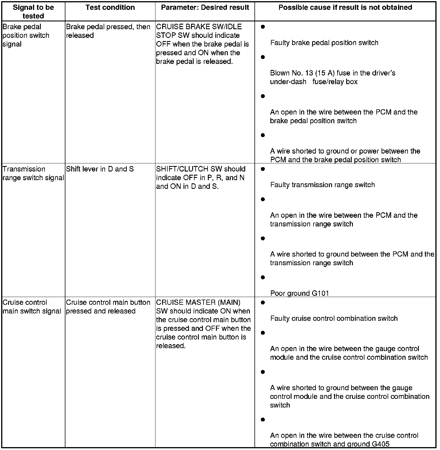 Cruise Control (PCM) Input Test