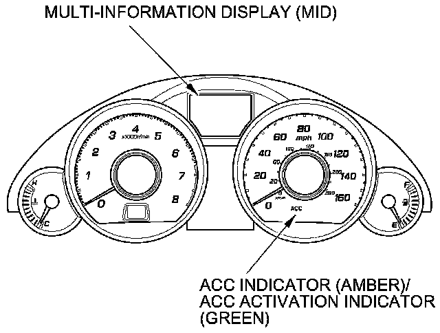 When the ACC system is OK, the ACC indicates its operation on the multi-information display (MID) when the MAIN switch is ON.