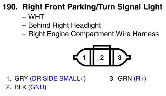 View 190 - Right Front Parking/Turn Signal Light Connector View