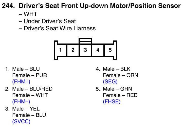 View 244 - Driver's Seat Front Up-down Motor/Position Sensor Connector View