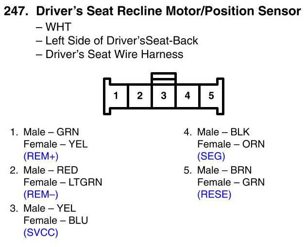 View 247 - Driver's Seat Recline Motor/Position Sensor Connector View
