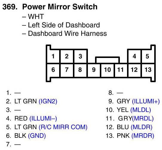 View 369 - Power Mirror Switch Connector View