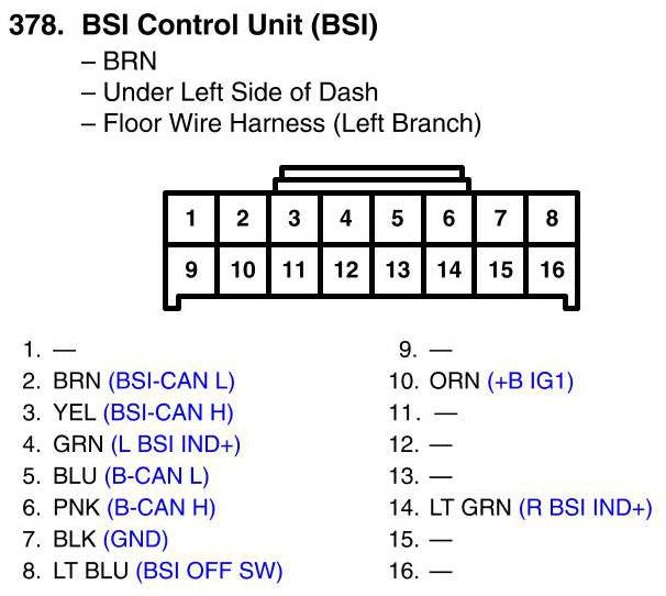 View 378 - BSI Control Unit Connector View (BSI)