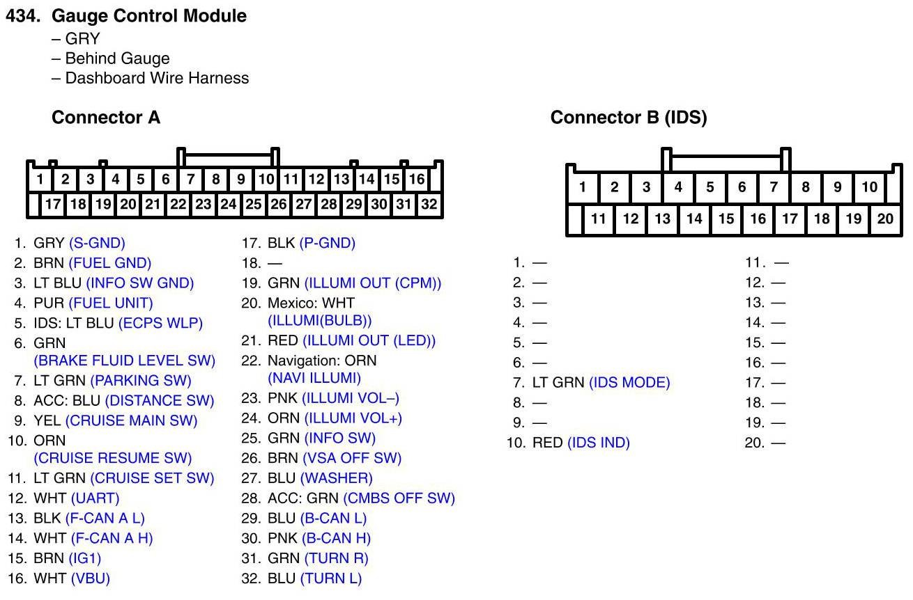 View 434 - Gauge Control Module Connector View